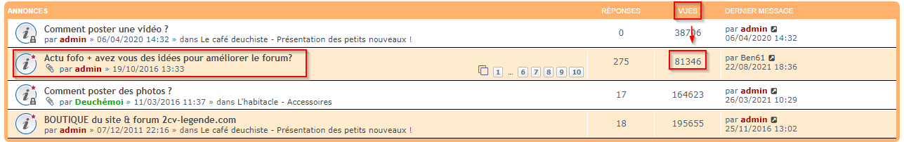 Je regarde régulièrement mes demandes et sur un autre forum ou je suis inscrit qui n’a rien à voir avec le monde des vieilles titines, on peut voir le nombre de personnes qui ont consultés le sujet (sur un smartphone et sur l’ordi) … cela existe sur ce forum ??