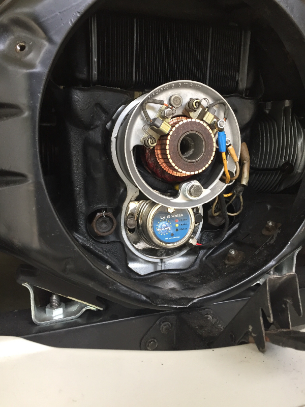 Après avoir testé deux condensateurs neuf, ça a toujours tendance à pétouiller... peut être que les masselottes ne sont plus si fraîches que ça non plus... du coup j ai succombé au modernisme et installé un allumage électronique. En gardant un allumage classique dans le coffre. Je n ai pas roulé avec mais il est clair que ça tourne mieux... le modernisme a du bon! A voir à l usage.