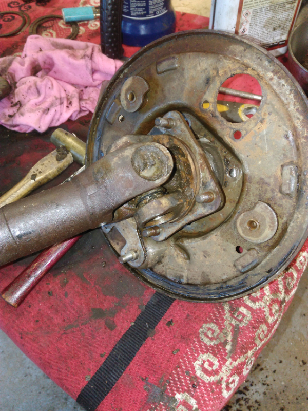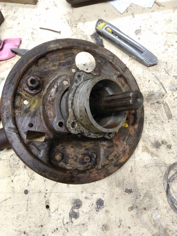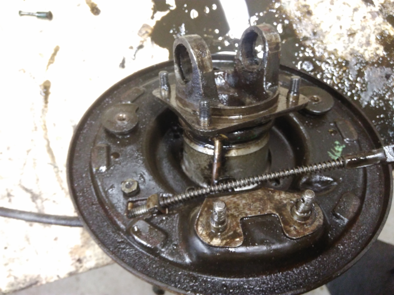 Pour le moment je continue sur ma boite et je me demandais comment retirer les flasques des tambours pour les restaurer ainsi que les roulements des cardans pour les changer. Je vois une sorte de circlip (mais je ne sais pas comment l'enlever), et un écrou maté, pour le moment inaccessible. :???: :???: