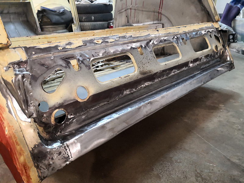 J'ai un faible pour le panneau support de feu arrière uniquement, et oui, je viens de finir de faire les soudures des support sur les intérieures d'ailes arrière.