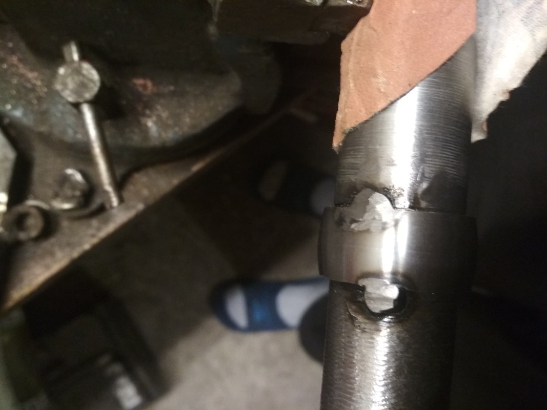 Remplacement de la bague. Encore une petite histoire. J'ai fais sauter l'ancienne pour y mettre la nouvelle. La mienne était sans rivé. Et il s'avère que les modèles avec rivet en refabrication n'ai pas compatible. Si j'avais su j'aurais rien fait. Bref petit passage au tour environ 1/10 de jeu pour qu'elle rentre puis pointage.