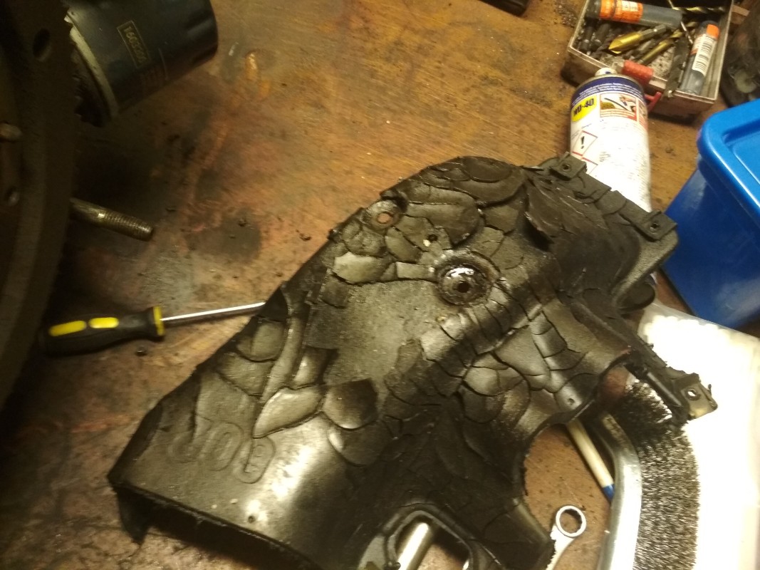Un petit coup de feroses sur le cache de la pompe a huile et sur la conduite d'huile à l'avant. J'ai aussi démonté les 2 support moteurs un coup de brosse de convertisseur et 2 couches de peinture en bombe.