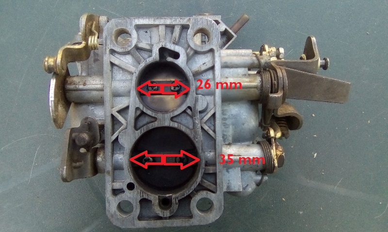 Le carburateur double corps 26/35 , les 2 chiffres correspondent au diamètre des buses au niveau de la semelle (papillons)