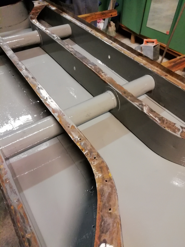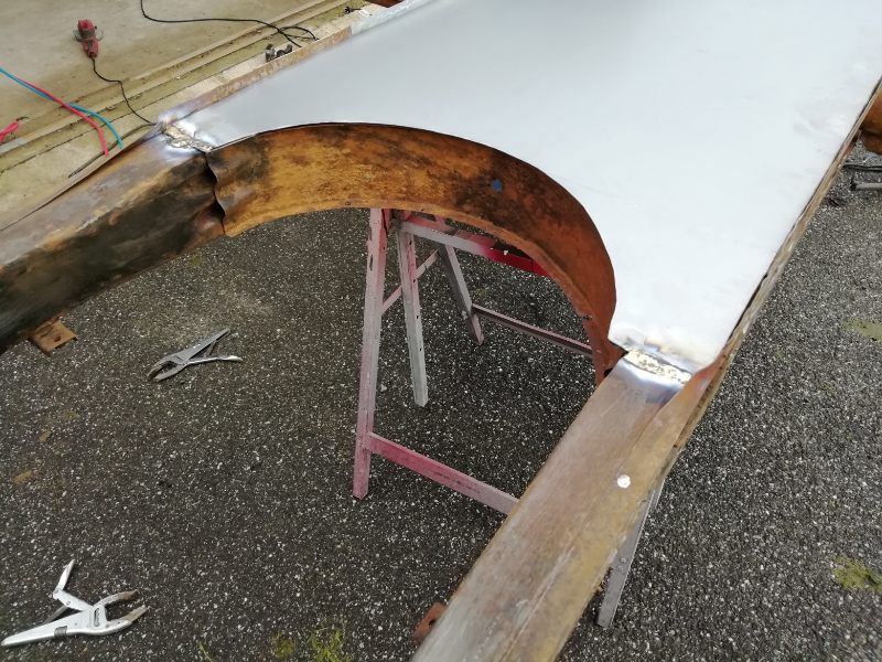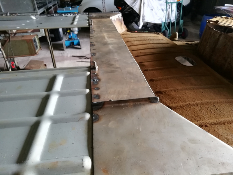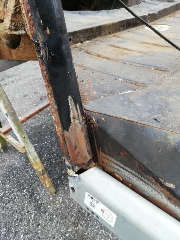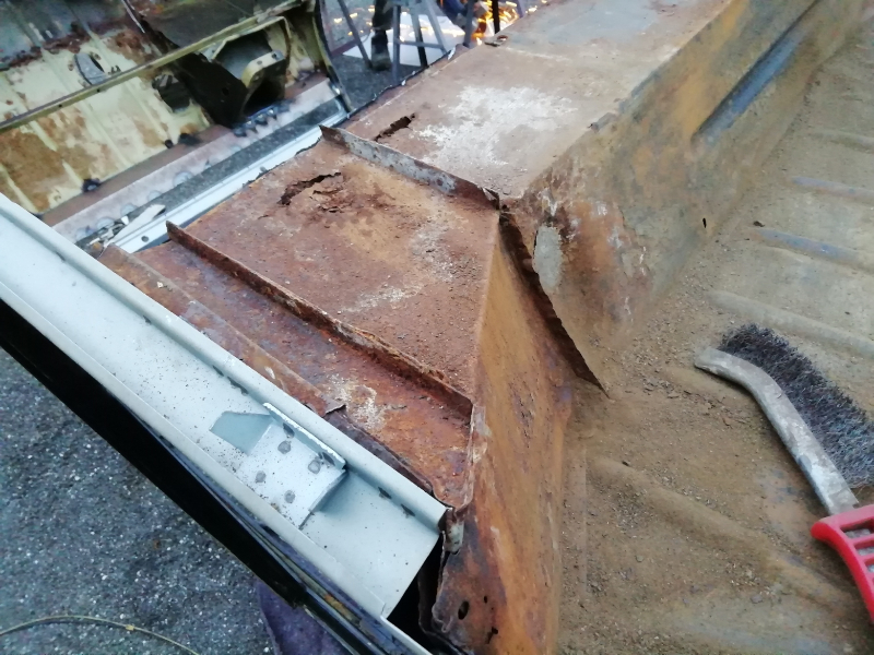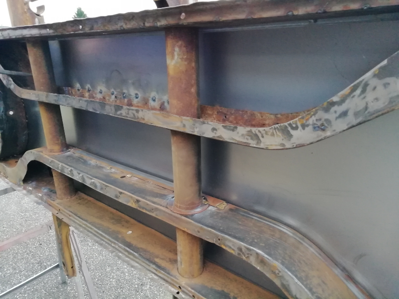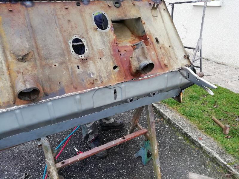 Cependant, le châssis n’est pas pourri. Des plaques de renfort sont soudées au endroits « fragilisés » et les tôles changées. Maintenant, la seule modification notable va être la réfection de la tôle de support du frein à main.
