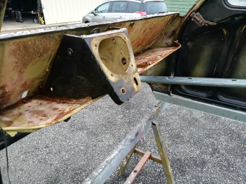 Cependant, le châssis n’est pas pourri. Des plaques de renfort sont soudées au endroits « fragilisés » et les tôles changées. Maintenant, la seule modification notable va être la réfection de la tôle de support du frein à main.