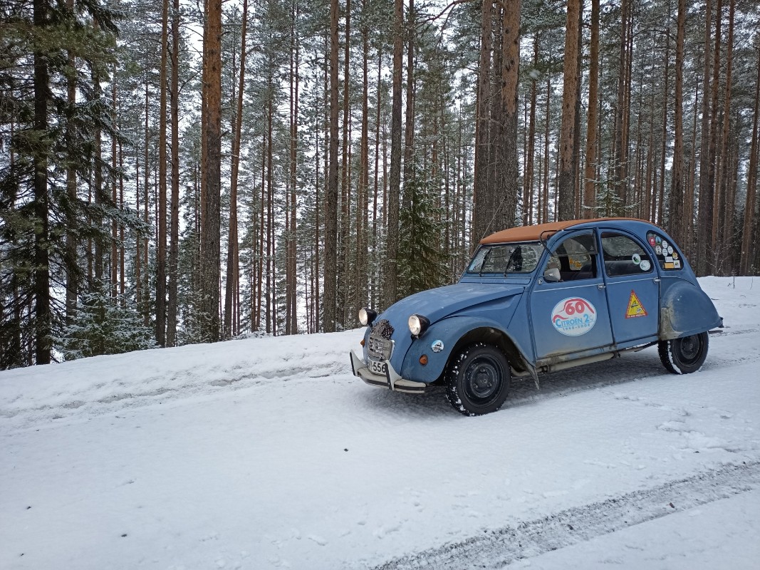 On a eu 15cm de neige dans la nuit, et ça continue ! Que faire donc sinon un n-ième test drive de la 2CV