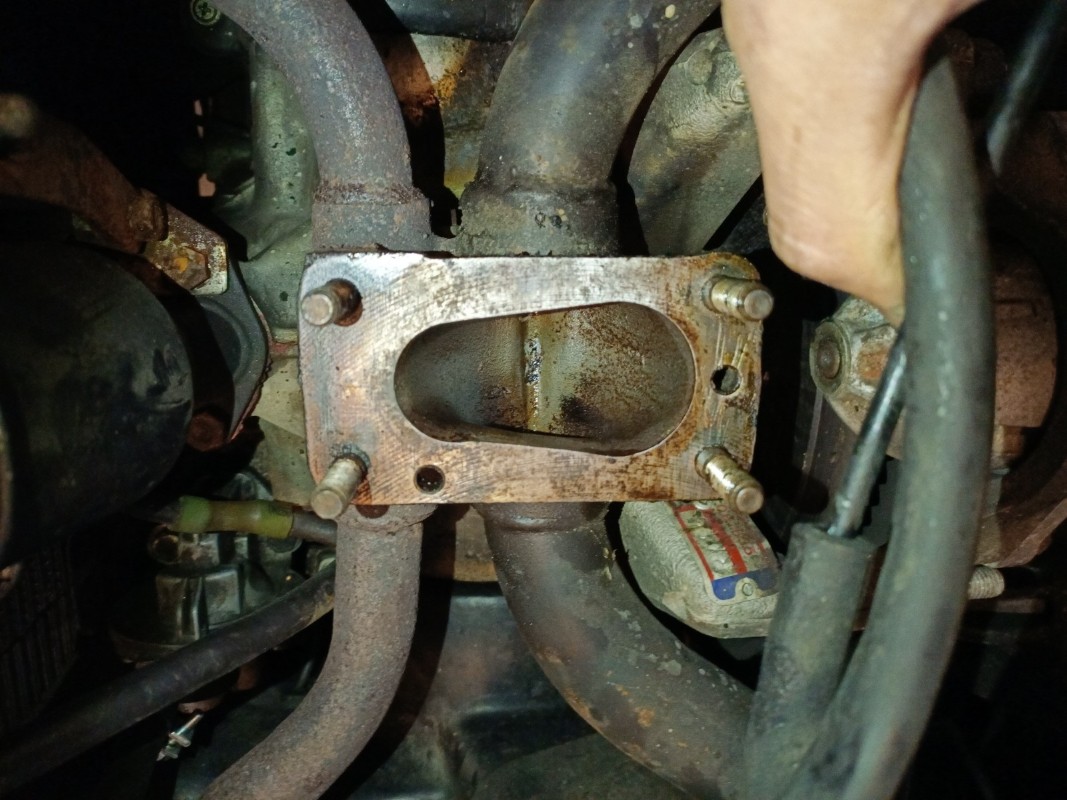- un seul joint entre le carbu et cale, pas de joint entre la cale et le collecteur (?) - pas normal, n'est-ce pas? ni de trace de pate a joint.