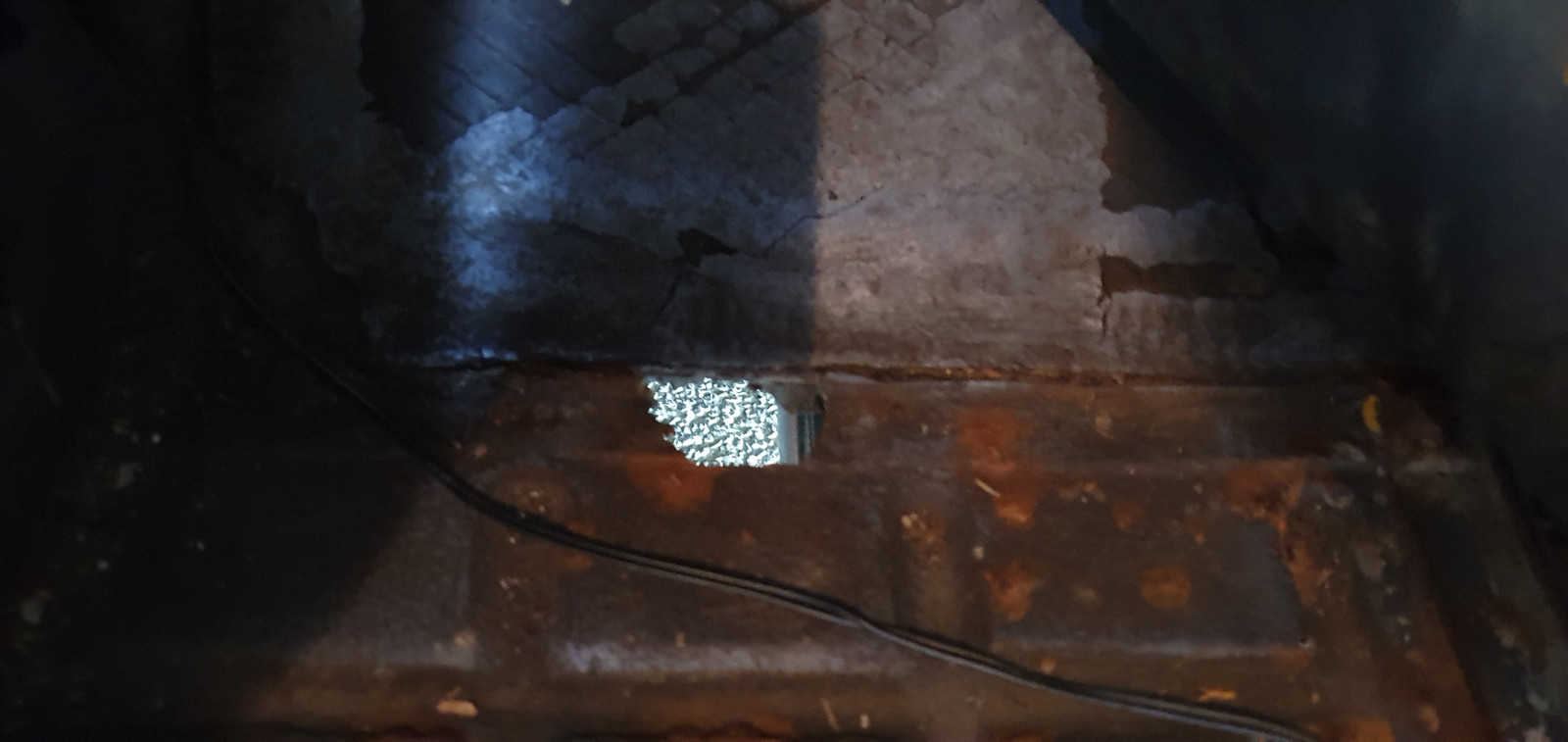 Première mauvaise nouvelle, comme je vous l'avais dit, j'avais vu un début de rouille au plancher avant l'achat mais à priori rien de méchant. Comme j'étais sous la voiture pour les amortisseurs j'ai décidé de voir un peu plus sérieusement ce que donnait ce point de rouille côté conducteur et en grattant un peu voilà ce que ça donne...