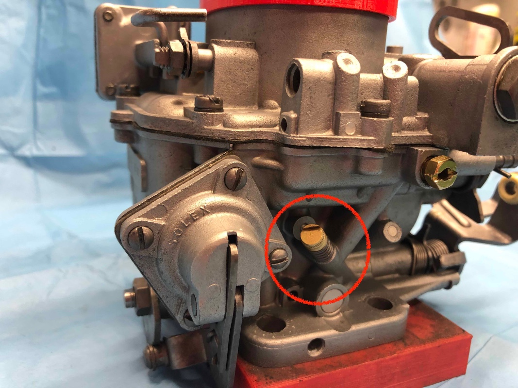 Sûr que si ta vis d'axe de papillon (cercle jaune) est serrée à fond, ton papilon au ralenti est largement ouvert et donc tu amorces ton circuit principal ...