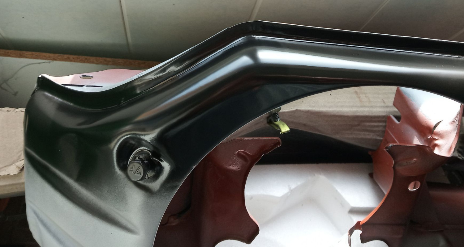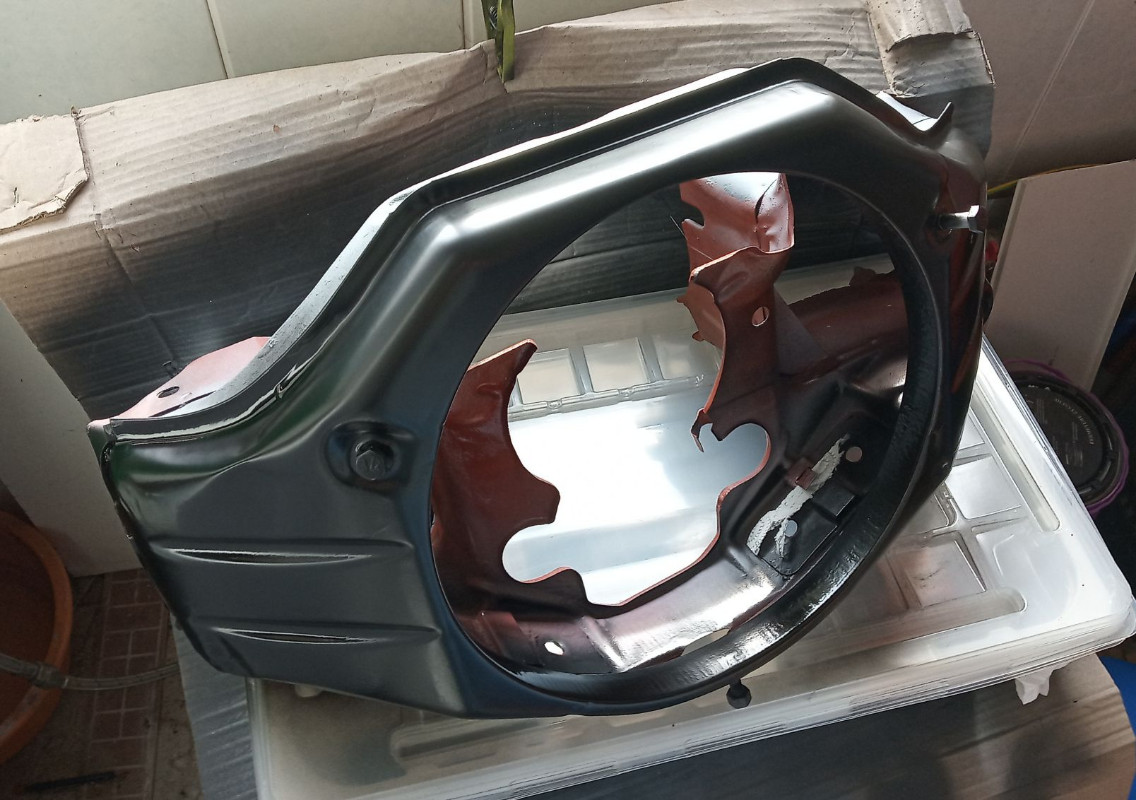 sur le devant par contre j'ai mis un coup de noir mat pour voir un peu ce que ça donne, malgré les bosses et les rayures qu'il reste.