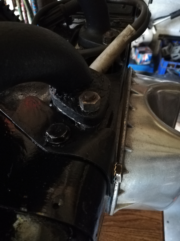 J'ai découpé la pipe d'échappement au raz de la platine support et me suit retrouvé avec d'un côté avec la tubulure manchotte et de l'autre la platine à ressouder dans la bonne position. J'ai donc d'abord posé la platine sur la culasse dans les goujons et ensuite mis l'araignée part dessus et j'ai bien vu que l'écart n'aurait jamais pu me permettre la pose, 4 mm au plus fort ! Je ne sais pas d'où cela vient, peut être que lors de la rectification de la culasse, l'insert du filetage du goujon qui a été posé ne l'a pas été exactement au bon endroit :???: