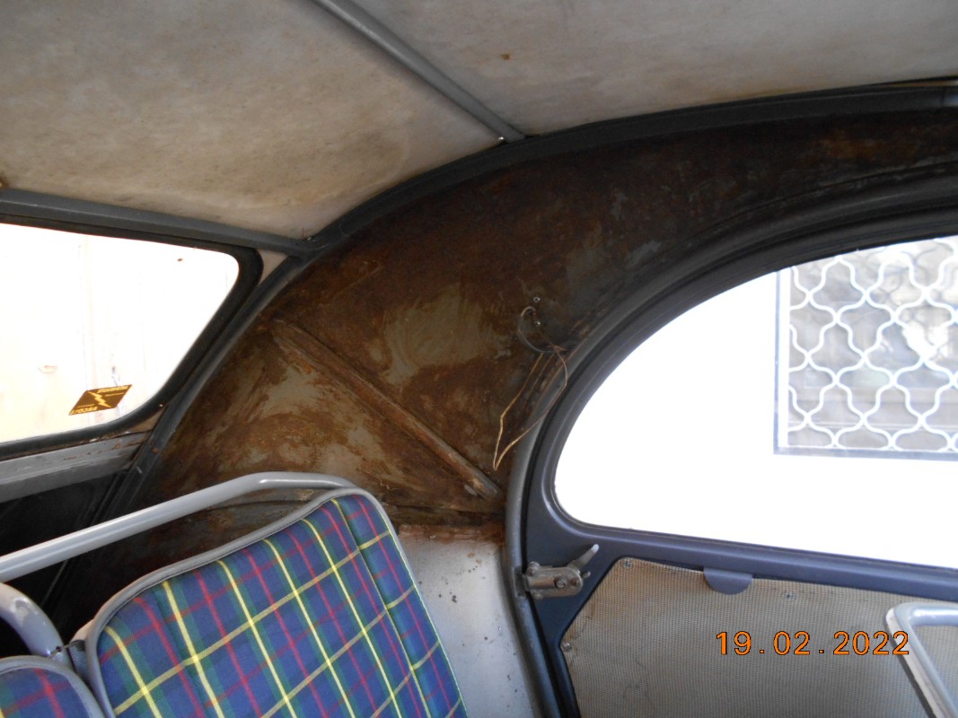 Vais pouvoir mettre propre l'intérieur et tout remettre en AC 132, m'occuper de l'éclairage (ni code ni plein phare). Je vais aussi changer le tissus sur les flancs car je n'ai pas pu enlever la rouille et c'est très moche...