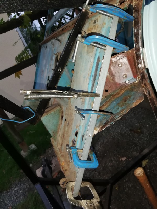 Avec un peu de retard ; Rassure-toi je ne soude jamais sur de la tôle rouillée . Je décape jusqu'à arriver à la tôle saine...mais c'est pas toujours facile de souder sur la tôle de 8/10...même avec un MIG...dans mon commentaire ( avec photo) je parle du rajout que j'ai fait en me servant d'un bout de tôle de récupération de 7/10ème , compliqué à souder car plus fin que la tôle de 8/10...:salut: