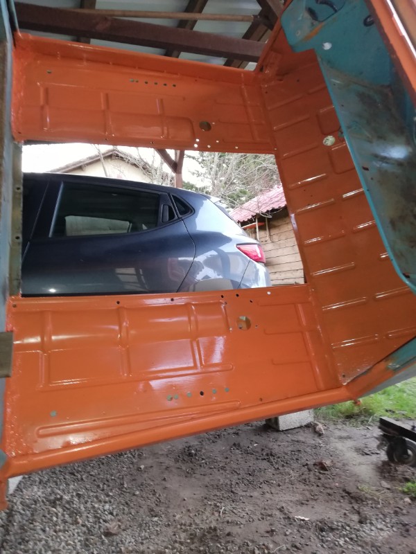 Cet après midi, avec 20° à l'extérieur, traitement au minium orange avant masticage des jonctions de tôle et peinture apprêt
