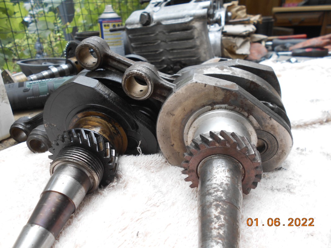 Voici les deux vilos: Celui démonté au second plan, et le 18cv au premier. Notez que les bielles semblents renforcées sur le 18cv et que les contre poids sont différents. Plus légers ? Difficile à dire !