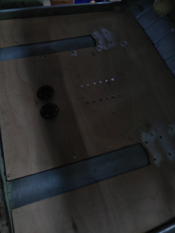 Pour le gabarit une plaque de contreplaqué de 5mm au dimension des planchers et plancher pedale , par le dessous juste à marquer les trous de fixation avant ça découper la place pour les pots de suspension après poser le gabarit sur le châssis et voir si ça correspond. Puis un coup de peinture blanche sur le gabarit posé sur la nouvelle tôle . Voilà , dans les grandes lignes