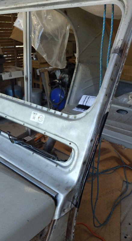 On a préparé la baie de pare brise, on l'a bien ajusté comme il faut et après on a mis de la bombe cuivre sur les deux cotés de la baie.