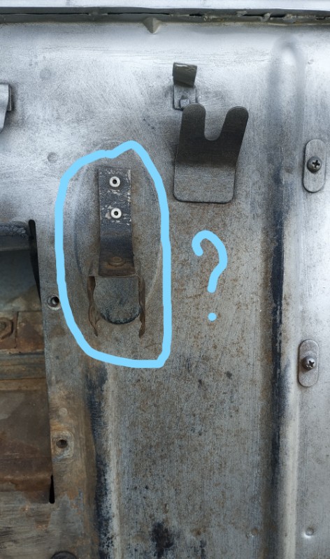 Bonjour, l'emplacement avec la flèche bleu, c'est sûrement pour fixer le rail de la banquette avant, ou pour les sièges avant séparés