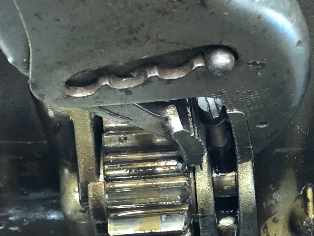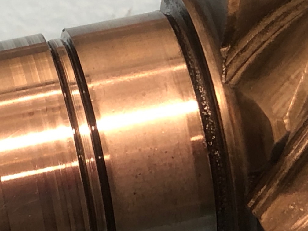 Dans notre BV que nous démontons, le pignon de MA présente des bandes de contact mais tourne sans jeu, sans bruit et les entrées de dent sont correctes. Je ne vais donc pas le retirer.