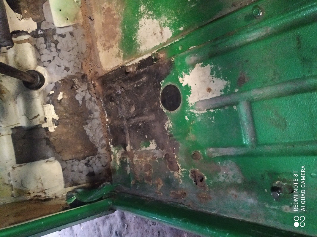 - Les planchers, à changer en décaissant entiers ils vont du plancher pédales au caisson sous banquette. Avant 1970 (ou 1963 chez MCC)sans renforts ils sont à souder au châssis, après 70 intégrés au plancher c'est ce qu'il faut à Titine qui a l'air d'être née après le milieu des années 70.