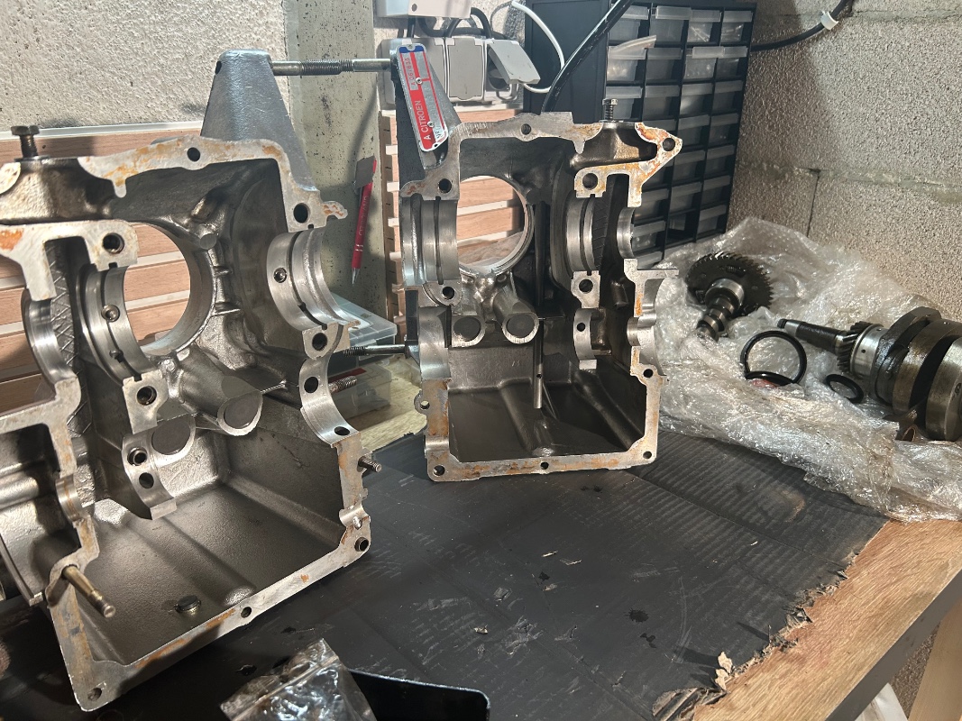 J'ai nettoyé les carters à l'essence et ils sont effectivement bien revenus. Il reste des traces de joint liquide sur les portées mais je vais nettoyer ça avant de ré-assembler. Je ne sais pas ce qu'ils ont fait avant, mais on aurait dit que la pompe à huile avait été siliconée, et y'en avait même dans les trous des vis, un peu de partout...