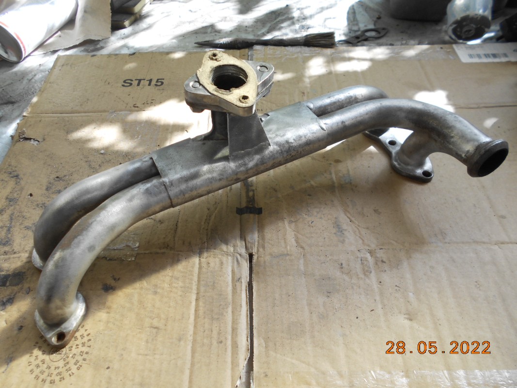 Montage de la pipe Byno avec un carbu de 32 ! Le pot primaire est modifié, et le carbu est tourné à 90° pour que la tringlerie d'accélération soit dans le même axe...