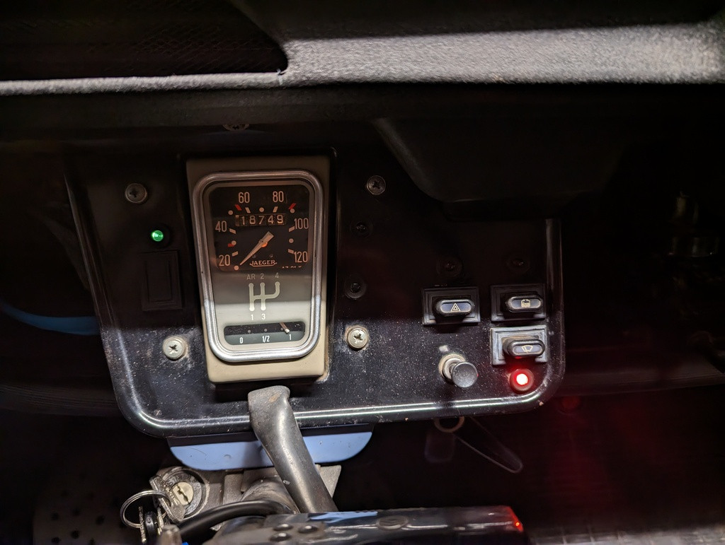 Tant que j'y suis, je nettoie et je traite les traces de rouille au Rustol CIP : Le support de la batterie est dégraissé, nettoyé et traité au Rustol lui aussi : Ayant accès derrière le tableau de bord, je fixe le petit témoin rond acheté à prix d'or : Je suis équipé en pince à sertir et en cosses diverses et variées (plates, rondes...)