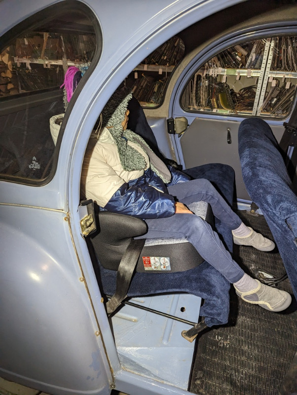 Bien évidemment, ma Princesse saute sur l'occasion pour tester la deuche en étant debout dedans :