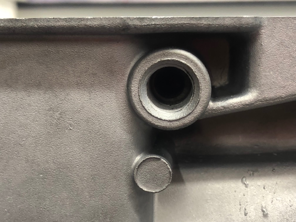 Pour pouvoir percer les alésages des billes de sécurité, Citroën fore sur le coté droit de la BV, un canal qui doit être fermé.
