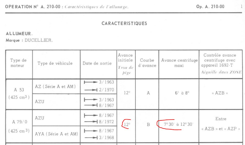 Pour ce moteur la doc citroen l'avance static 12° et l'avance centrifuge 7,5° a 12° .