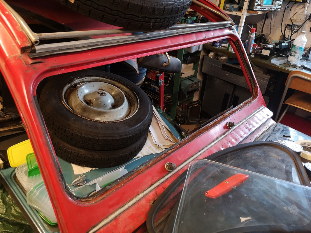 Ma réflexion est la suivante: je suis dépassé par cette caisse. Non seulement les planchers (latéraux+pédaliers) sont out, mais les bas de caisse le sont aussi. Le fond de coffre est parti, les joues sont bouffées aussi, le caisson arrière (où passe le support du réservoir également). La baie de pare-brises est plus corrodée que ce que pensais. Cerise sur le gâteau, la jupe arrière est bien enfoncée, en plus d'être corrodée. Si c'était juste les bas de caisse+planchers, j'aurais pu m'en sortir par bouchonnage avec mon MIG. Mais là, ça demande de ressouder des tôles en bout à bout, et de faire de la chirurgie que je ne suis pas capable de faire... En fait, c'est ce qui m'avait fait perdre la motivation à l'époque. Mon job fait également que je ne peux plus mobiliser deux-trois jours de suite... Par contre, la titine ne m'est jamais sortie complètement de la tête, et j'ai mis des sousous de côté petit à petit dans l'espoir de trouver une solution peut-être plus chère, mais qui devrait me sortir du pétrin.Eric13190 a écrit : Tu as du courage, partage si tu veux ta réflexion en ce qui concerne ta caisse, cela pourrait servir.