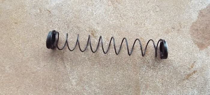Le ressort d'origine, avec deux petites masselottes en tôle à chaque extrémité