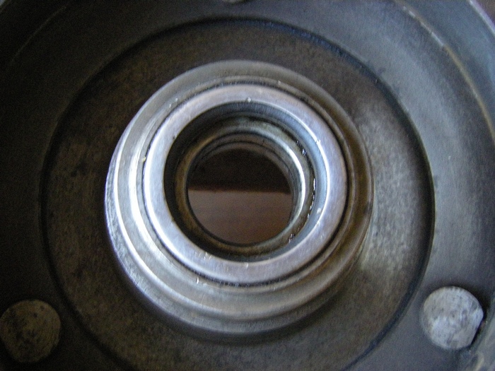 Je n'ai pas démonté les bagues écrous, les roulements semblent en bon état et je n'ai pas l'outil adéquat ; en effet la bague écrou a quatre échancrures en biseau, et j'ai peur de l'abîmer avec mon outil Facom qui n'est pas exactement fait pour ce modèle mais pour les bagues écrous plus récentes. Les pare-poussière intérieurs sont d'époque : ce ne sont pas des joints spi comme maintenant, ils ont une cuvette extérieure métallique et ils sont plus épais. Tout cela est en bon état, pas de raison d'y toucher. :laughing: