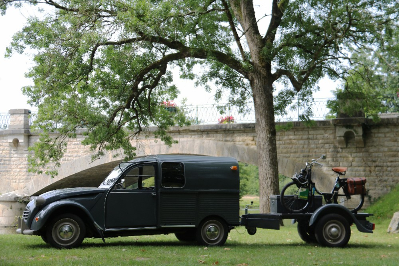 Ensuite une AZU A qui tire une remorque. On devrait exposer une remorque Kiwa spéciale 2 CV avec roues de 2 CV d'origine.