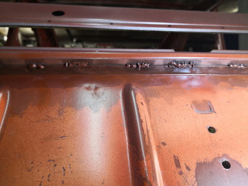 Moi, je souderais en point de chaînette, puis meulage pour refaire la tôle complètement, là où c'est sain.