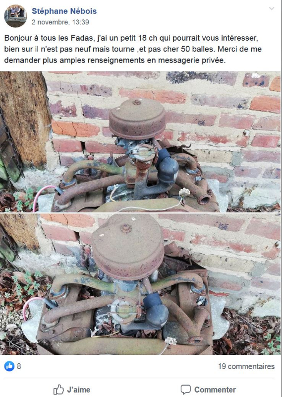 Mais on a quand même un beau moteur de 2 CV 6 à vendre ! Et s'il le met sur son AZAM, ça va péter... :lol: