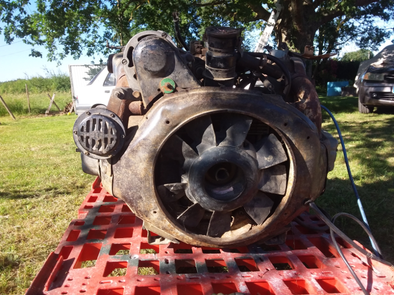 Alors le propriétaire m'a dit que c'était pas son moteur, qu'il le vendais de la part d'une personne d'un certain âge. Apparemment, cette personne avait une 2cv il y a quelques années et à eu un accident. Il a gardé le moteur, qui n'avait rien, et l'a remisé. Maintenant, cette personne cherche à débarrasser sa maison, prévoyant de partir en maison de retraite. Voilà l'histoire. Le moteur n'est pas bloqué et aurait 60000km...
