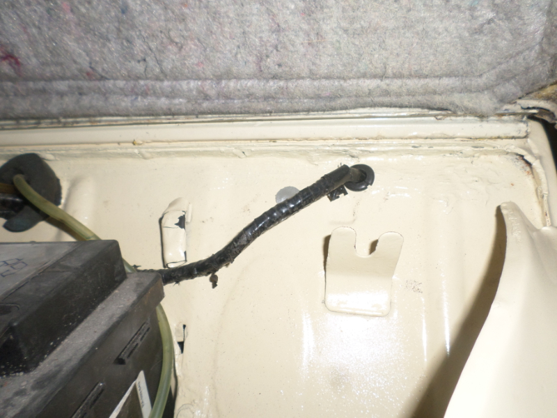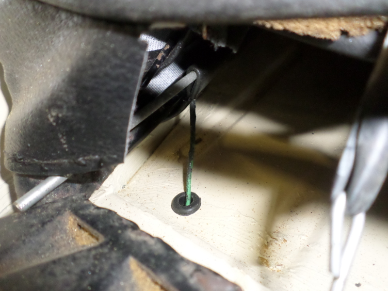 Le fil venant du reservoir entre dans l'habitacle à gauche sous la banquette arr