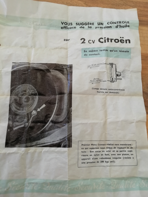 Re: Contrôle pression d'huile sur 2 CV AZAM de 1965