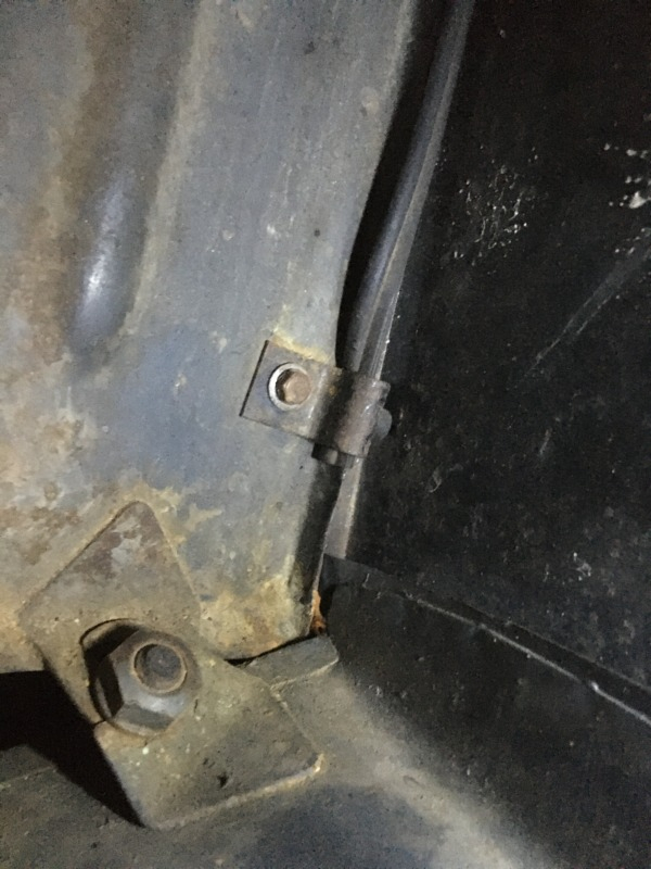 Je suis allé voir sur mon AZAM : c'est le même montage que sur ta voiture. Et sur le crochet il y a un petit téton en caoutchouc collé, qui vient s'appuyer sur la joue d'aile pour empêcher les vibrations.
