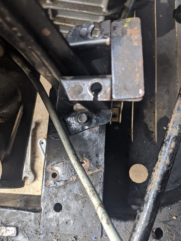 Certaines pièces ont étés remontées à la va vite, notamment le frein a main (adapté au passage en frein a disques) qui était nécessaire pour le transport sur plateau. le voilà : Ce qui m'a mis la puce à l'oreille est que l'ensemble venais presque toucher le maître cylindre