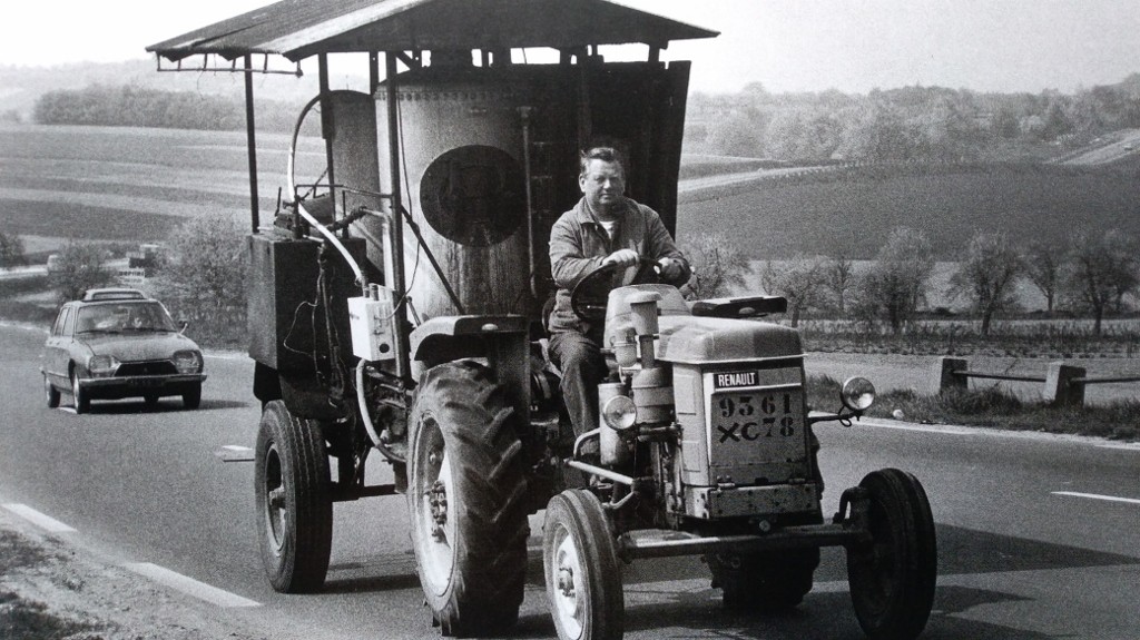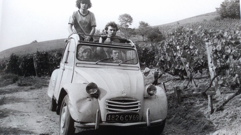 Une 2cv dans les vignobles du Beaujolais en 1972