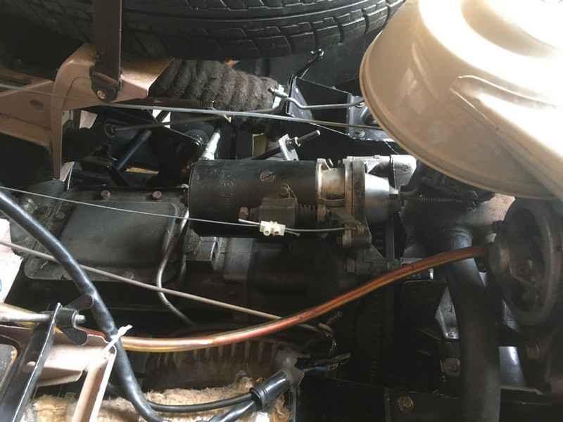 Quand on met un démarreur de 2 CV sur une AMI 6, le câble est tout en biais, c'est pas beau mais pas grave, mais il frotte sur la roue de secours qu'il faut ôter pour que ça fonctionne bien.