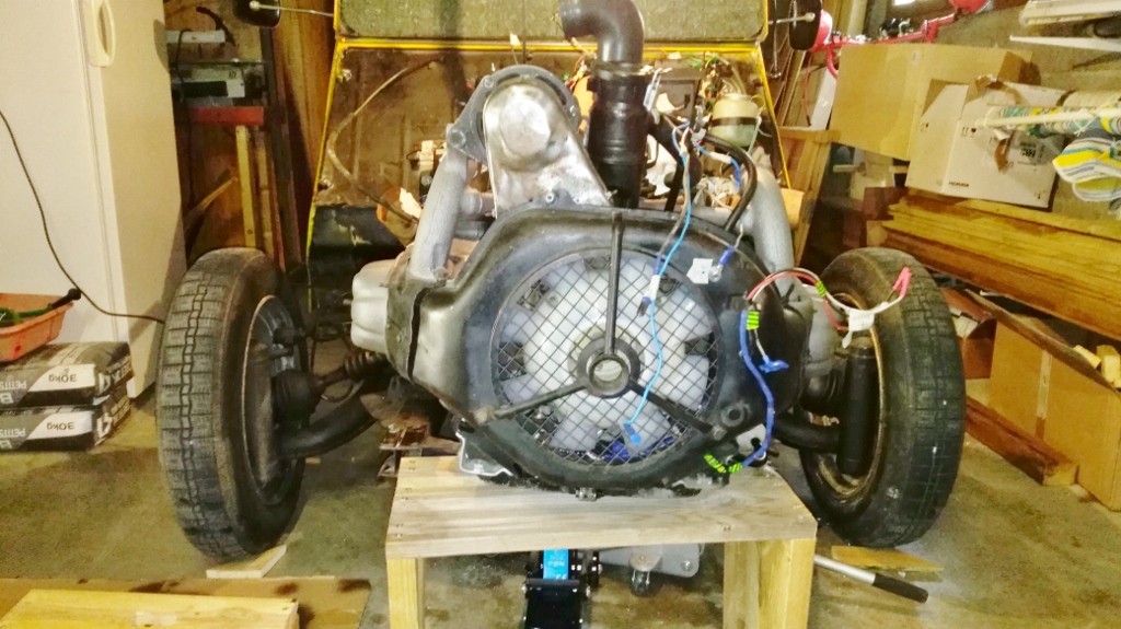 le moteur repose juste à coté du chassis sur la tablette de bois