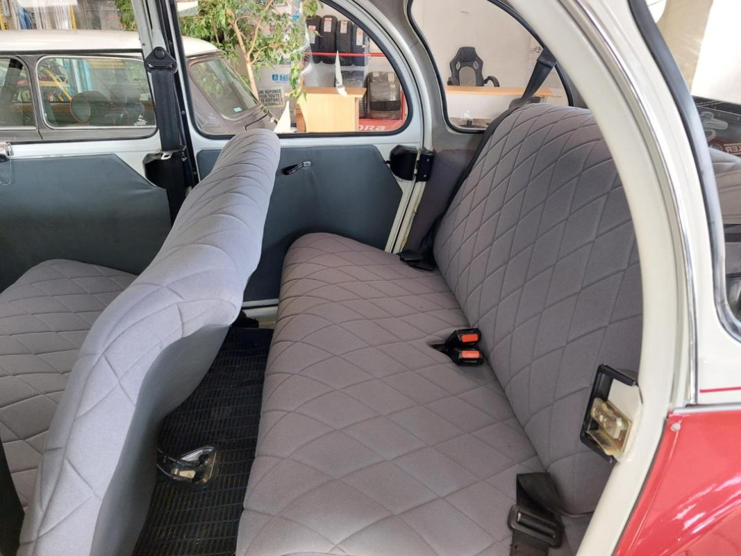 Le châssis est galva, "blaxonnée", capote neuve, sellerie neuve, pneus neufs, tapis de sol neufs, moteur remis à neuf, peinture refaite aux couleurs d'origine, etc.