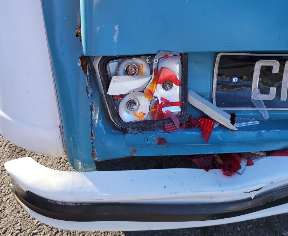 Pour mon garagiste, c'est pas trop grave, pare-choc et supports, queues de pie, panneau arrière, malle et un peu de peinture... on verra.