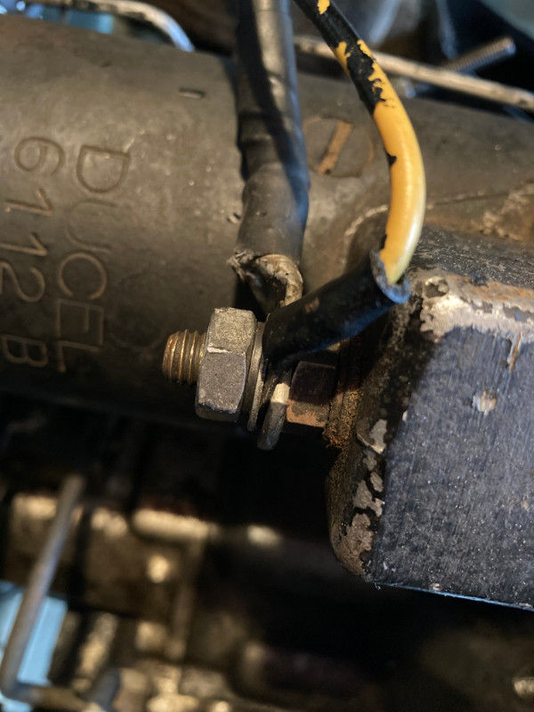 Tu ressers surtout bien l'écrou que tu as dévissé, parce que là le contact ce fait très mal et tu as des arcs électriques que ne peux que causer des dégâts.