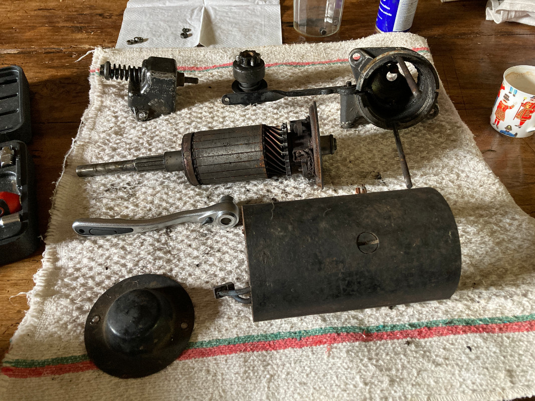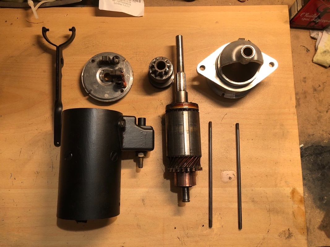 Prochaine étape dépose du démarreur et ouverture de celui-ci, tu vas trouver des tutos, le point délicat et de sortir le charbon du plus pour pouvoir extraire la flasque arrière.