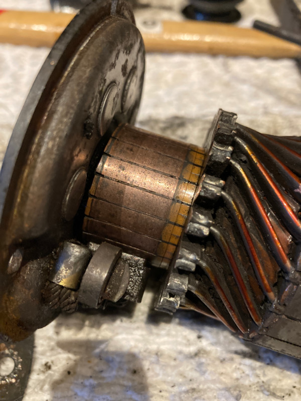 Avec un gros nettoyage, dont l’induit (la laine d’acier 0000 est bien aussi) ainsi que les gorges de l’induit, ça va repartir comme en 40, avec de beaux charbons tout neufs.