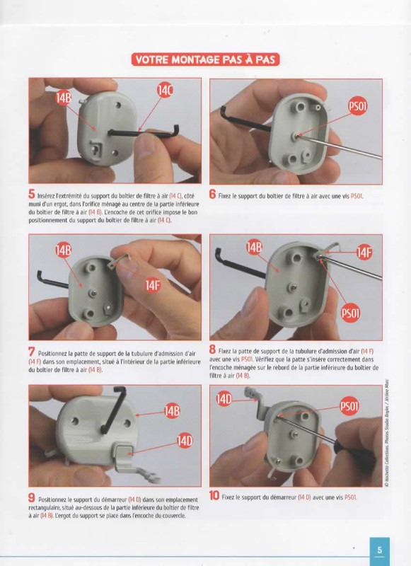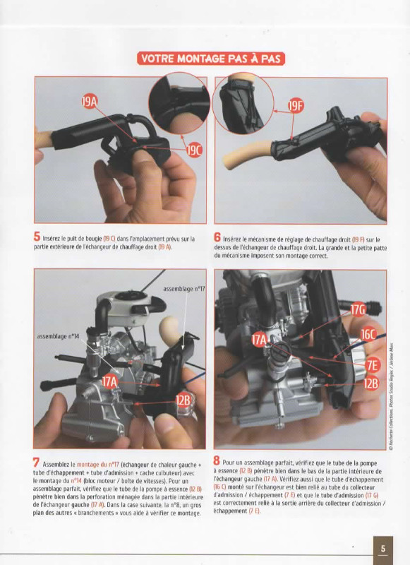 Le carbu et le reniflard d'huile. La pièce n° 7E (Collecteur d'admission et d'échappement) n'étant pas de la bonne couleur (métal), Hachette en a rajouté une de couleur noire. Je n'ai aucune photo du montage terminé.